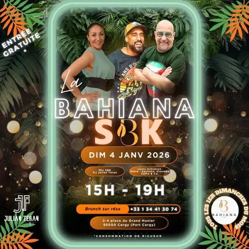 Les après-midi SBK by Julian Teran Production, dédiées à la Salsa, la Bachata et la Kizomba de 15h00 à 20h00.
